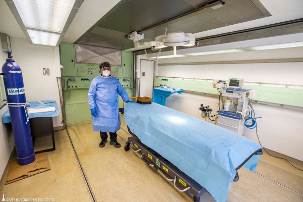 Eşrefpaşa Hastanesi sağlık ekibi olarak depremin ilk gününden beri Hatay’da olduklarını belirten Eşrefpaşa Hastanesi Başhekim Yardımcısı Op. Dr. Yavuz Uçar, “İlk olarak AFAD, UMKE ve Sağlık Bakanlığı’yla koordineli olarak Hatay Eğitim ve Araştırma Hastanesi’nin bahçesinde hizmet verdik. Daha sonra çadır kentlerin yoğun olduğu yerde kendi sahra hastanemizi kurduk. Hatay Büyükşehir Belediyesi’nin tahsis ettiği alanda gerekli hazırlıkları yaptık. Eşrefpaşa’nın Hatay şubesini kurduk. Sahra hastanemizde her türlü donanım mevcut. Tam donanımlı ameliyathanemizin kurulumunu tamamladık. Gerekli durumlarda ameliyatlara başlayacağız. Küçük bir laboratuvar kurduk. Hemogram ve idrar tahlili yapıyoruz. Biyokimya aracımız da yolda. Kendi ameliyat ekipmanlarımızı kendimiz sterilize edebileceğiz. Tıbbi alet yönünden hiçbir eksiğimiz kalmadı” diye konuştu.
