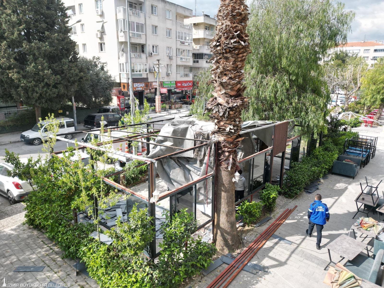 İzmir Büyükşehir Belediyesi, özellikle Buca Forbes Caddesi’nde bazı işletmelerin kurduğu, kamuya ait alanları işgal eden kaçak yapıların yıkımına başladı. Zabıta ekipleri ayrıca izinsiz yapılan üst örtülerle, yeşil alanlardaki masa ve sandalyelerin kaldırılmasını sağladı.