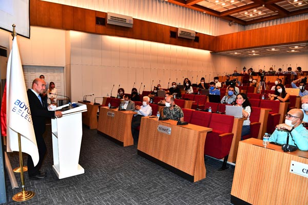 İzmir Büyükşehir Belediye Başkanı Tunç Soyer, yeni öğretim yılı başlarken okullara yönelik pandemi önlemleri, eğitime yönelik destek projelerini ve ulaşım önlemlerini basın toplantısıyla açıkladı. İzmir Büyükşehir Belediyesi Meclis Salonu’ndaki toplantıda konuşan Başkan Soyer, tüm dünyayı etkisi altına alan COVİD 19’un boyutları itibarıyla insanlık tarihinin gördüğü en büyük salgınlar arasında şimdiden yerini aldığını ve hangi noktada nihayete ereceğinin de bilinmediğini belirterek, “İzmir Büyükşehir Belediyesi olarak ilk vakanın görülmesinden itibaren kriz belediyeciliği uygulamalarıyla kentimiz ölçeğinde bu olumsuz etkileri azaltmak, yaraları sarmak, imkanlarımız ölçüsünde işini, gelirini kaybedenlere destek olmak için çalıştık. İzmirli hemşerilerimizle birlikte ilk günden bu yana hep dayanışma ruhunu canlı tutmaya gayret gösterdik. Hep beraber tarihe geçecek bir yardımlaşma ve dayanışma sergiledik. Bugünden itibaren yeni bir dönem başlıyor. 2020-2021 eğitim-öğretim yılı pandemi koşullarında kısmen okullarda, kısmen uzaktan eğitim yöntemiyle start alıyor. Haziran’dan bu yana atılan normalleşme adımlarının en önemlisi belki de bu olacak. İzmir Büyükşehir Belediyesi olarak biz de kentimizde bu süreci kolaylaştırmak, velilere, eğitimcilere, okullara ekonomik ve yasal imkanlarımız ölçüsünde destek olmak için bir dizi çalışma hazırlığı yaptık” diye konuştu. Başkan Soyer, toplantıda salgından korunmaya yönelik önlemler, eğitime destek, ulaşım önlemleri ve sosyal destekler olmak üzere dört başlık altında İzmir Büyükşehir Belediyesi’nin verdiği hizmetleri ve yapılacak çalışmaları aktardı.