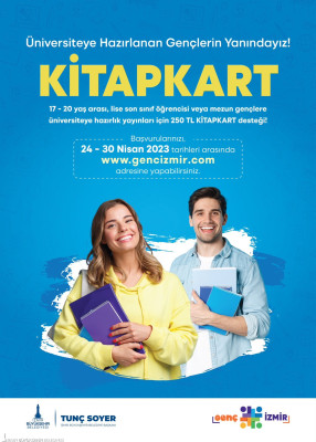 İzmir’de yaşayan 17-20 yaş arası gençlerin başvuruları incelenerek, Kitap Kart desteği almaya hak kazananlar SMS ile bilgilendirilecek. Kitap Kartlar, İzmir Tarihi Havagazı Fabrikası Gençizmir Gençlik Yerleşkesi’nden, Örnekköy Gençizmir Gençlik Merkezi’nden ve merkeze uzak ilçelerde oturan gençler için İzmir Büyükşehir Belediyesi Yerel Hizmetler noktalarından teslim edilecek.