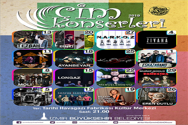 Birçok festivalde yer almış, İzmirli müzik gruplarının sahneye çıkacağı Çim Konserleri’nde, genç ve başarılı müzisyenler, pop, rock, alternatif, indie, caz, deneysel ve elektronik müzik gibi farklı türlerde seçkiler sunacak.