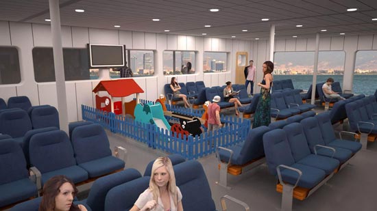 “Sadece yerleştirme planında bulunan asansörler ve geçiş koridorları değil, yönlendirme izleri, tutunma barları, tekerlekli sandalyelerin kilitlendiği özel detaylar, sesli uyarılar ve yönlendirmeler de yapıldı. Ayrıca İzmir Büyükşehir Belediyesi ‘Engelsiz İzmir’ çalışması kapsamında engellilerin hayatını kolaylaştıran önlemleri alan kamu ve özel sektör kuruluşlarına kırmızı bayrak dikiyor. Engelli erişimi çalışmasıyla kırmızı bayrak alımı için de başvuru yapıldı. Yolcu güvertesinde ayrıca, çocuklar için bir oyun alanı da yer alıyor. Hasan Tahsin Feribotu’nun ardından Ahmet Piriştina ve Kubilay adlı diğer iki gemi çalışmaları da yapılacak.”
