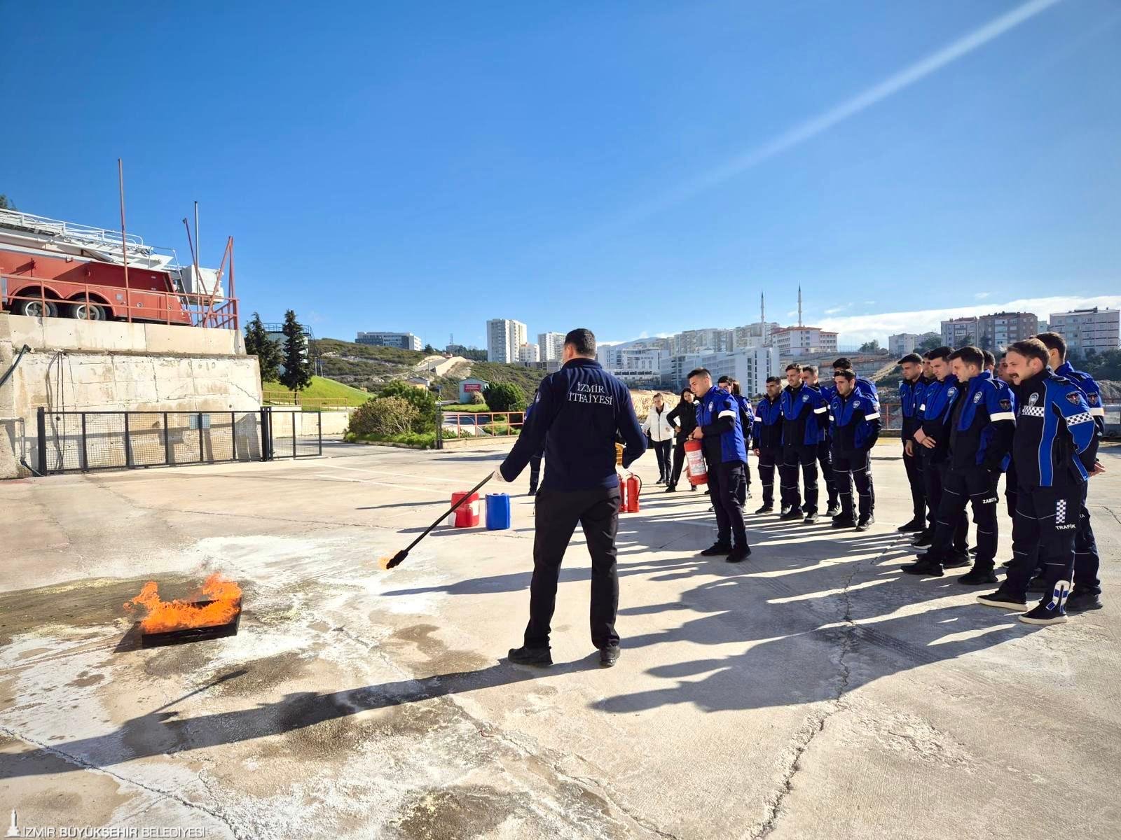 İzmir Büyükşehir Belediyesi zabıta ekipleri, yangın riskine karşı alınması gereken önlemler ile olası yangınlara karşı doğru müdahale tekniklerine yönelik eğitimden geçirildi.