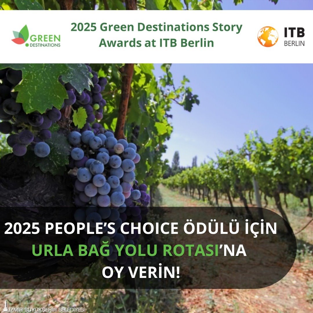 “2024 Yeşil Destinasyonlar En İyi 100 Hikaye” listesine seçilen Urla Bağ Yolu, şimdi de “2025 Yeşil Destinasyonlar Halkın Seçimi Ödülü” için finale kaldı. İzmir’e bu anlamlı ödülü kazandırmak için https://opavote.com/en/vote/5100820134100992 linkine tıklayarak Turkey – Urla/İzmir seçeneği ile oy verilebiliyor.