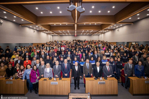 İzmir Büyükşehir Belediye Başkanı Tunç Soyer, Kültürpark 4 numaralı holde bulunan meclis toplantı salonunda belediye personeliyle bir araya geldi. Çalışanların yeni yılını kutlayan Başkan Soyer, “Sizleri böyle bir arada, güler yüzle görmek beni çok mutlu etti. Sizlerle olmaktan çok mutluyum. Çok keyifli ve gururlu bir iş yaptığımızı düşünüyorum” dedi.