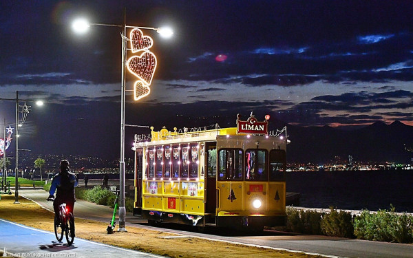 İzmir Büyükşehir Belediyesi 2022’ye sayılı günler kala daha aydınlık bir yıl umuduyla kent merkezindeki cadde, sokak ve meydanları rengarenk ışıklarla donattı. Konak ve Karşıyaka Tramvayları, Birinci Kordon’da çalışan Nostaljik Tramvaylar da ışıklarla süslendi.