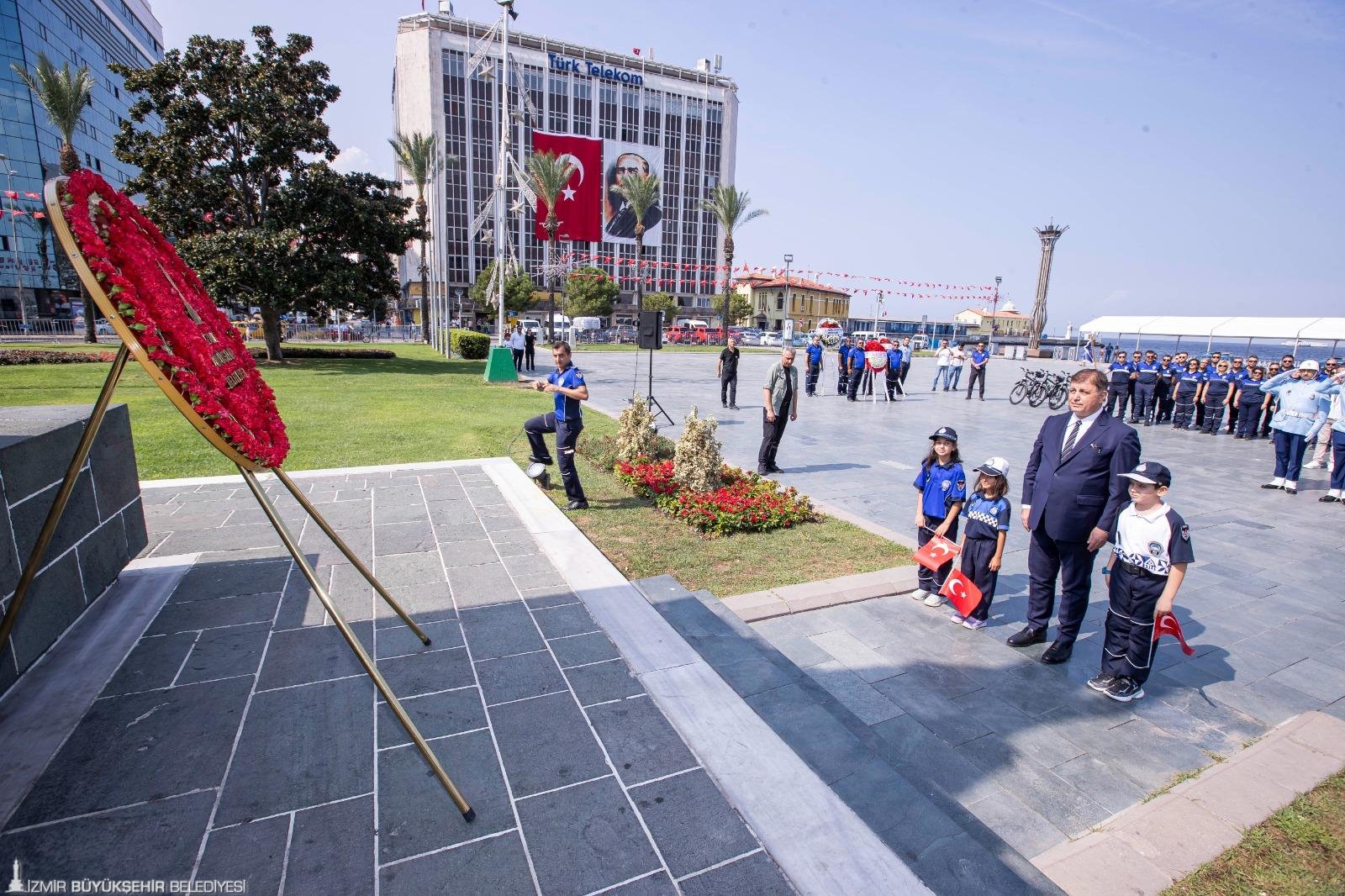 İzmir’de Zabıta Teşkilatı’nın 198’inci kuruluş yıl dönümü, kentte çeşitli etkinliklerle kutlanıyor. İzmir Büyükşehir Belediye Başkanı Dr. Cemil Tugay, zabıta teşkilatının kuruluş yıl dönümü nedeniyle Cumhuriyet Meydanı’nda düzenlenen törene katıldı. Törende ayrıca Konak Belediye Başkanı Nilüfer Çınarlı Mutlu, İzmir Büyükşehir Belediye Başkan Vekili Dr. Zafer Levent Yıldır, İzmir Büyükşehir Belediyesi Genel Sekreteri Barış Karcı ile Genel Sekreter Yardımcıları Şükran Nurlu ve Çağatay Güç, ESHOT Genel Müdürü Dr. Turgay Bozoğlu, İzmir Büyükşehir Belediyesi İtfaiye Dairesi Başkan Vekili Yaşar Korkmaz ve zabıta teşkilatı yer aldı. Tören, Başkan Tugay’ın Atatürk Anıtı’na çelenk sunmasıyla başladı.