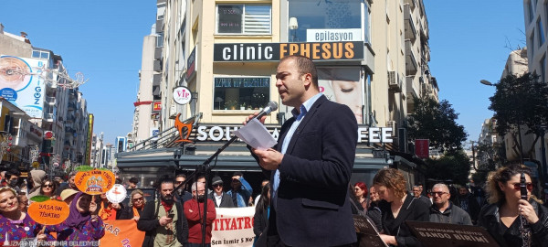 İzmir Büyükşehir Belediyesi Kültür ve Sanat Dairesi Başkanlığı Şehir Tiyatroları Şube Müdürü Özkan Ataklı burada yaptığı konuşmada, İzmir Büyükşehir Belediye Başkanı Tunç Soyer’e sanata destekleri nedeniyle teşekkür ederek “Tiyatronun aydınlatıcı, iyileştirici duyguları içinde barındıran, naif ama boyun eğmeyen, ideallerinden vazgeçmeyen, çıkarsız, büyüklük taslamayan bir yoldaş olma gerçeğinin unutulmaması gerekiyor. Zira, görevi toplumu dönüştürmek, ona gerçekleri söylemek ve iyileştirmek, daha iyiye götürmek olan tiyatro ancak tevazu, dayanışmayla, iyi niyetle sürdürülebilir ve hedefine ulaşır” ifadelerini kullandı.