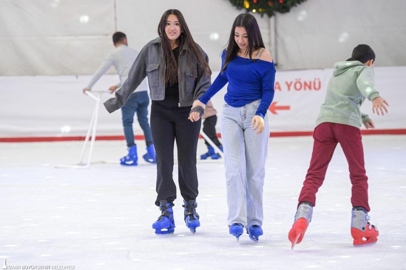 İzmir Büyükşehir Belediye Başkanı Dr. Cemil Tugay’ın Karşıyaka Belediye Başkanlığı döneminde düzenlenmesine öncülük ettiği ve son iki yıldır Kültürpark’ta gerçekleştirilen Yeni Yıl Festivali, bu yıl da vatandaşların yüzünü güldürdü. Festival kapsamında Kültürpark ve Bostanlı sahilinde ilk kez kurulan gerçek buz pistleri, İzmirlileri kış atmosferiyle buluşturdu. Aileleriyle birlikte pistlere gelen çocuklar, gençler ve yeni yıl tatilini değerlendiren yurttaşlar, güvenli ve eğlenceli bir ortamda buzda kayma deneyimi yaşadı. Büyük ilgi gören iki merkezdeki buz pistleri, 15 Şubat tarihine kadar hizmet vermeyi sürdürecek. Yarıyıl tatiline girilmesiyle birlikte özellikle çocukların ve gençlerin pistlere ilgisinin artması bekleniyor. Uzman eğitmenler eşliğinde, müzikle desteklenen etkinliklerde minikler buz üzerinde keyifli anlar yaşayacak. Kültürpark ve Bostanlı’daki 400 metrekarelik buz pistlerinde, 7-26 yaş arası gençler için 100 TL, yetişkinler için ise 150 TL ücretle hizmet sunuluyor.
