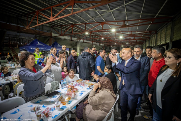 Ramazan ayının ilk gününde Konak Atatürk Meydanı’nda verilen 3 bin kişilik iftar yemeğiyle başlayan dayanışma sofraları, Buca’da Adile Naşit Parkı, Göksu Parkı ve Çaldıran Parkı’nda; Konak’ta Lale Parkı, Ege Mahallesi, Karabağlar’da Peker Parkı, Bornova’da Serintepe Parkı, Bayraklı’da Gümüşpala Kapalı Pazaryeri ve depremde evleri hasar görmüş konteyner kent alanında, Aliağa’da Demokrasi Meydanı, Helvacı Parkı ve Yenişakran Mahallesi ile Menemen Kazımpaşa Mahallesi’nde devam etti. Toplam 29 bin 500 kişilik iftar yemeği verildi. İzmir Büyükşehir Belediyesi’nin iftar programı Ramazan’ın son günü Tarihi Havagazı Fabrikası’nda şehit yakını ve gazilere verilecek 1500 kişilik iftar yemeğiyle son bulacak.