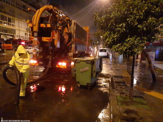 İZSU ekipleri ise yoğun yağışların neden olabileceği olumsuzlukların önüne geçmek amacıyla 900’den fazla personeliyle sahadaydı. Ekipler, merkez ve çevre ilçelerde su birikintilerinin olduğu bölgeleri tespit ederek mazgal ve yağmur suyu kanallarının temizlik çalışmalarını sürdürdü. Yağmur suyu ayrıştırma projelerinin hayata geçirildiği bölgelerde ise ciddi bir sorun yaşanmadı.