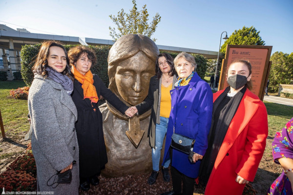 İzmir Büyükşehir Belediye Başkanı Tunç Soyer’in “kadın dostu kent” vizyonu doğrultusunda 25 Kasım Uluslararası Kadına Karşı Şiddetle Mücadele Günü kapsamında önemli bir etkinlik düzenlendi. Yaşamını yitiren kadınlar anısına Konak Meydanı’nda metro çıkışındaki parkta “Turuncu Bahçe” ve bahçe içinde sergilenen “Kadın Anıtı”nın açılış töreni düzenlendi. Erkek şiddetine maruz kalarak hayatını kaybeden kadınların anısına bir dakikalık saygı duruşunda bulunulmasının ardından İzmir Büyükşehir Belediyesi Kadın Ritim Topluluğu ile Okudans Dans Sporları Merkezi üyesi gençler, kadına şiddet temalı dans gösterisi düzenledi. Ürkmez Kadın Tiyatrosu oyuncusu Muhsine Kesici de küçük yaşta evlendirilen kız çocuklarını temsil etmek ve bu duruma tepki göstermek için etkinliğe gelinlik giyerek katıldı.