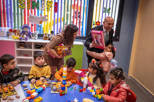 Açılış konuşmasının ardından Başkan Soyer, Masal Evi’nin açılışını çocuklarla yaptı. Masal Evi’nin kreş bölümünde çocuklara hediye veren Başkan Soyer ardından meslek fabrikası kurs merkezindeki kursiyerlerle sohbet etti.