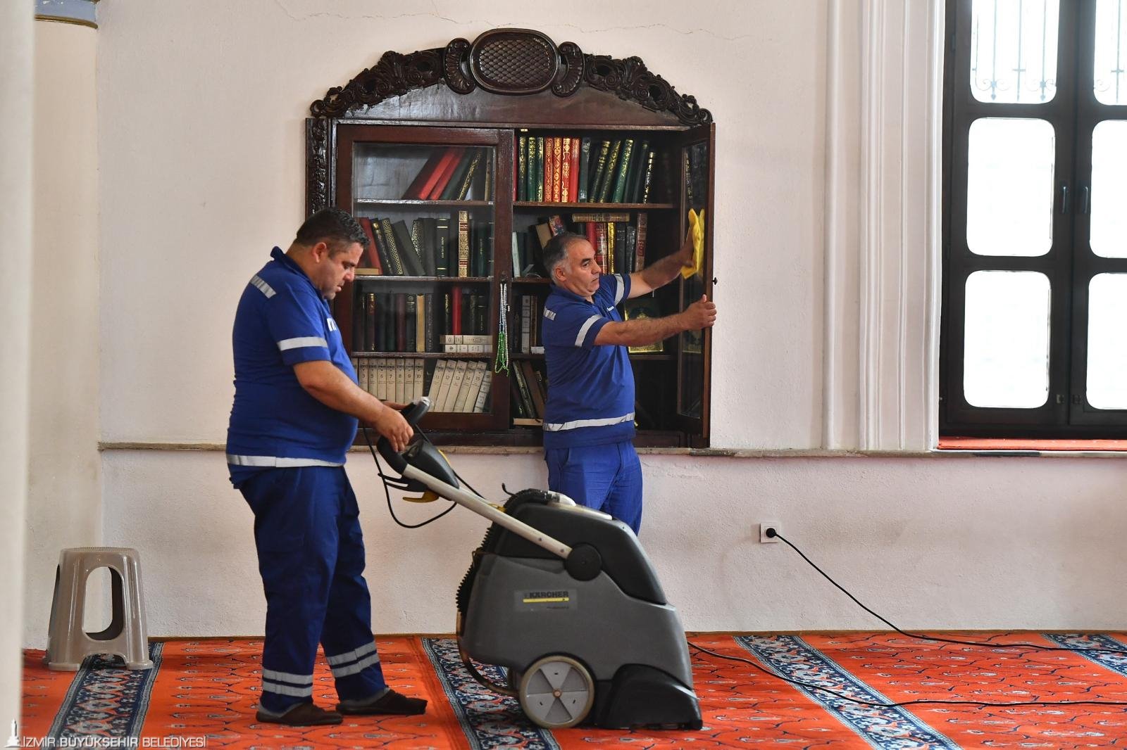 İzmir Büyükşehir Belediyesi, Ramazan ayı öncesi camilerde temizlik çalışmalarına hız verdi.
