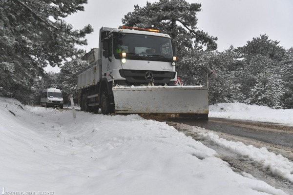 İzmir Büyükşehir Belediyesi merkez, kuzey ve güney olmak üzere üç bölgede kar küreme ve tuz serim araçlarıyla çalışıyor. Kar yağışının artması ile birlikte ekip ve araç sayısı da artırıldı. Ekipler gece 5 greyder, 8 tuzlama aracı, 2 adet traktör kepçe ve 3 adet kamyon ile çalışmalarını sürdürüyor.