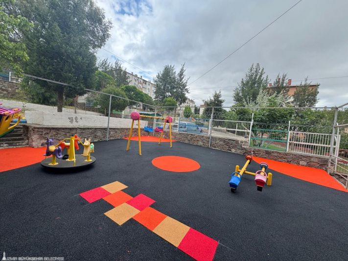 Tartan pistlerin yanı sıra çocukların güvenle parklarda oyun oynayabilmesi için zarar gören kauçuk zeminler baştan sona yenilendi. Karşıyaka’da İZBAN hat boyunda bulunan parklar, Volkan Vedat Akay Parkı, Alaybey’deki kafelerin önündeki parklar, Çiğli İZELMAN Sabiha Gökçen Anaokulu Parkı, Bayraklı 75. Yıl Mahallesi Parkı, Bornova Aşık Veysel Rekreasyon Alanı çocuk oyun alanı, Buca’da Kemal Sunal Parkı, 1081 Sokak Köşesi Parkı, Konak Göztepe’deki kafelerin önündeki parklar, Narlıdere’de İstihkam Lojmanları Parkı, Mahmut Türkmenoğlu Parkı, Menemen Gazi Mahallesi Parkı’nın zemin yenilenmesi tamamlandı. Böylelikle parklar estetik bir görünüme de kavuştu. Onarım ve yenileme çalışmalarının devam edeceği bildirildi.
