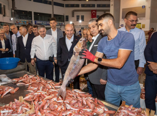 İzmir Büyükşehir Belediye Başkanı Tunç Soyer av yasağının sona ermesiyle birlikte İzmir Büyükşehir Belediyesi Su Ürünleri Hali’nde düzenlenen geleneksel buluşmaya katıldı. Esnaftan balık alarak siftah yapan Başkan Soyer, “Emek veren kardeşlerimizin sofralarına ekmek olmasını temenni ediyorum. Vatandaşlarımızın daha ucuza, daha lezzetli ve sağlıklı balık yemesini diliyoruz” dedi.
