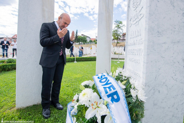 Dünyanın gözü önünde 8 binin üzerinde sivilin katledildiği Srebrenitsa Soykırımı’nın 27’nci yıldönümü için Bosna-Hersek’e giden İzmir Büyükşehir Belediye Başkanı Tunç Soyer, Potoçari Anıt Mezarlığı’ndaki anmanın ardından barış mesajları verdi. Srebrenitsa Soykırımı’nı bir kere daha lanetleyen Başkan Tunç Soyer, “Burada en çok utanç hissediyor insan. Bir yandan bu büyük acıyı hissediyorsunuz, bir yandan da büyük direnişi görüyorsunuz” diye konuştu.