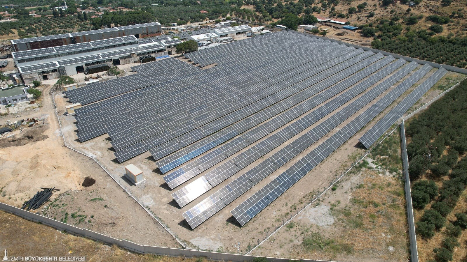 İklim kriziyle mücadelede yenilenebilir enerji yatırımlarıyla önemli adımlar atan İZSU Genel Müdürlüğü, Menemen’in Değirmendere Mahallesi’nde 3,75 megawatt (MW) kapasiteli ve şebeke bağlantılı güneş enerjisi santralinin kurulumunu tamamladı. İZSU’nun öz kaynakları ile TÜBİTAK Marmara Araştırma Merkezi (MAM) yükleniminde yapılan GES projesi ile yıllık 6,5 milyon kWh elektrik enerjisi üretilmesi planlanıyor. Buradan elde edilecek enerjiyle İZSU bünyesindeki toplamda 7 adet atık su arıtma tesisi ve su kuyusunun elektrik enerjisinin karşılanması hedefleniyor.