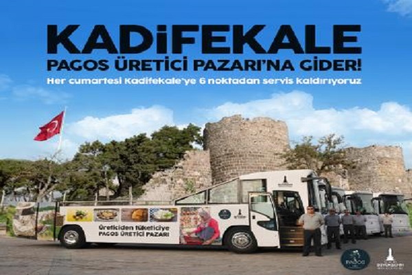 İzmir Kadifekale’de 20 Temmuz 2019’da açılan Pagos Üretici Pazarı, bu cumartesi ikinci kez kuruluyor. Kentin tarihi simgelerinden Kadifekale’de hem üreticinin doğrudan tüketiciyle buluşması hem de bölgenin marka değerini artırması beklenen üretici pazarına bundan böyle her cumartesi günü kentin altı farklı noktasından, seyir zevki yüksek otobüslerle servis hizmeti de verilecek.