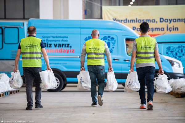 İzmir Dayanışması’na katılmak isteyen yurttaşlar ise bizizmir.com web sitesine girerek Halkın Bakkalı üzerinden 185 liralık “Gıda Paketi” ve 65 liralık “Hijyen Paketi”nden istediği miktarda satın alınabiliyor. Büyükşehir Belediyesi yardım için başvurmuş, gerçekten desteğe ihtiyacı olan ve sosyal incelemesi tamamlanmış ailelere bu paketleri ulaştırıyor.