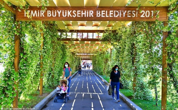 İzmir Büyükşehir Belediyesi dikey bahçe uygulamalarında ekonomik ve ekolojik bir çalışma yürütüyor. Viyadük ayaklarında beton üzerine ahşap ve tellerden bir tırmanma zemini oluşturuluyor. Bitkiler toprağa dikilerek sulama sistemi kuruluyor. Böylelikle diğer dikey bahçe uygulamalarına göre çok ucuz, kalıcı ve uzun ömürlü bir çalışma yürütülüyor. Sarılıcı ve tırmanıcı bitkilerle toprak bağlantılı dikey ve düşey uygulamalar kentsel mekanlarda iklim krizinin etkilerini azaltmada da rol oynuyor. İzmir Büyükşehir Belediyesi, asfalt ve beton dokunun yoğun olduğu benzer alanlarda yeşil koridor çalışmalarını zenginleştirerek sürdürecek.