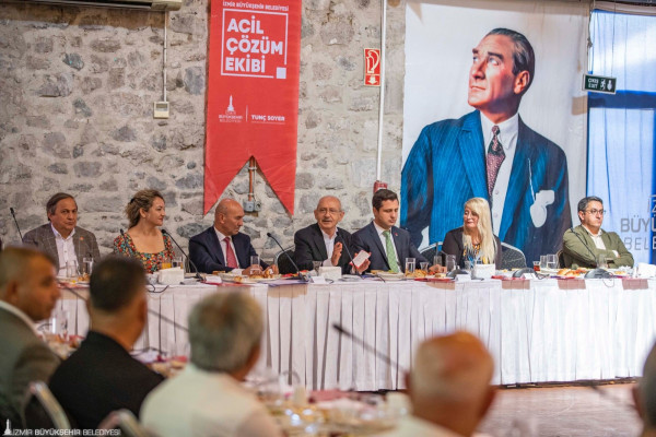 Cumhuriyet Halk Partisi (CHP) Genel Başkanı Kemal Kılıçdaroğlu, İzmir programının üçüncü gününde İzmir Büyükşehir Belediye Başkanı Tunç Soyer’in Acil Çözüm Ekipleri’nin sorunlarını hızla çözüme kavuşturduğu dezavantajlı mahallelerin muhtarlarıyla bir araya geldi. İzmir Büyükşehir Belediye Başkanı Tunç Soyer’in ev sahipliğinde Tarihi Havagazı Fabrikası’nda düzenlenen kahvaltıya Genel Başkan Kemal Kılıçdaroğlu, CHP Genel Başkan Yardımcısı Seyit Torun, CHP İl Başkanı Deniz Yücel, CHP Milletvekilleri Ednan Arslan, Tuncay Özkan, İZBETON Genel Müdürü Heval Savaş Kaya, Acil Çözüm Ekibi’nin yöneticileri, Bayraklı, Bornova, Buca, Karabağlar, Konak, Çiğli ve Menemen’den gelen, Acil Çözüm Projesi’nin uygulandığı 33 mahallenin muhtarı katıldı.