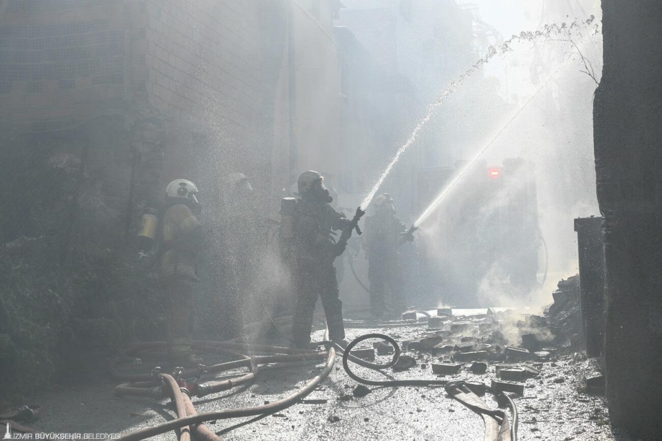 İzmir’in Konak ilçesine bağlı Bozkurt Mahallesi’nde bulunan iki katlı metruk bir binada saat 16.30 sıralarında yangın çıktı. Yoğun dumanı fark eden çevre sakinleri durumu vakit kaybetmeden 112 Acil Çağrı Merkezi’ne bildirdi. İhbar üzerine İzmir Büyükşehir Belediyesi İtfaiye Dairesi Başkanlığı ekipleri 3 arazöz, 2 tonaj araç, 1 merdivenli araç, 1 AKS aracı ve 25 personel ile hızla olay yerine sevk edildi.