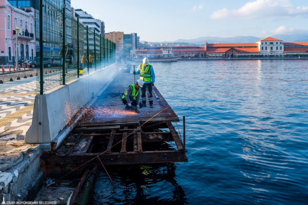 İzmir Büyükşehir Belediyesi, deniz suyunun etkisiyle çürüyerek yurttaşların can ve mal güvenliğini riske atan Konak Pier ve Pasaport Vapur İskelesi arasındaki üç seyir terasının sökümünü başlattı.