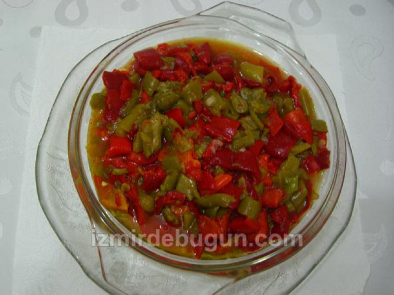 Biberler yıkanıp fırın tepsisine sıralanır. 250 dereceye ayarlanmış fırında 30 dakika tutularak biberler közlenir. Fırından çıkarılan biberler soyulup, çekirdekleri çıkarıldıktan sonra doğrama tahtasında 3-4 parçaya ayrılır. Parçalanan biberler çukur bir kaseye konur. Bir fincan zeytinyağı, yarım limon suyu, yarım limon suyu, bir yemek kaşığı üzüm sirkesi, 1 tatlı kaşığı toz şeker ve 3 diş dövülmüş sarımsak ilave edilir, karıştırılır. İmkan varsa 1 gün bekletilmesi bu salatanın tadınının daha güzel olmasını sağlar.