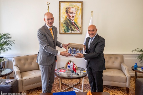 Dünya Belediyeler Birliği (UCLG) Kültür Zirvesi için kente gelen Hollanda heyeti İzmir Büyükşehir Belediye Başkanı Tunç Soyer’i makamında ziyaret etti. Ziyarete Hollanda’nın İstanbul Başkonsolosluğu ve Ankara Büyükelçiliği Kültür Ataşesi David Naves, İstanbul Konsolosluğu Kültür Müşaviri İpek Sur van Dijk, Ankara Büyükelçiliği Kültür Müşaviri Eray Ergeç katıldı. İzmir Büyükşehir Belediye Başkanı Tunç Soyer, “Kültür sürdürülebilir kalkınmanın en önemli enstrümanlarından biri. Gelecek nesillere insanoğlu olarak sadece gen değil mirasımızı da bırakırız. Hız çağındayız. Ardımızda hiçbir şey yokmuş gibi yaşıyoruz. Atalarımızın bugüne getirdiklerini anlamalıyız ki geleceğe bakabilelim. Bu nedenle Kültür Zirvesi için heyecanlıyız. İzmir’de geleceğin dünyasında kültürün rolünü ele alacağız. Tüm kültürler aynı zorluklarla karşılaşıyor. En büyük amacımız ortak çözüm yolları bulmak” şeklinde konuştu.