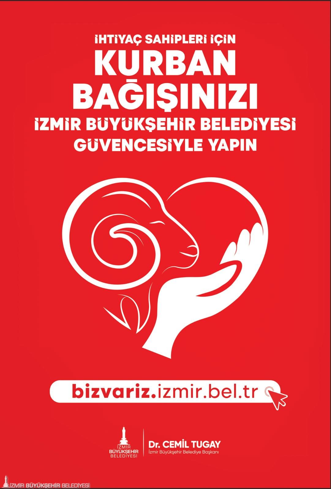 Canlı hayvan bağışı yapmak isteyenler ise ya kurbanlık hayvanları toplama alanına getirecek ya da bizvariz.izmir.bel.tr üzerinden başvuru yaparak belediye ekiplerinin adresten almasını sağlayabilecek. Canlı kurbanlık hayvanlar 15-16-17 Haziran (Arife, bayramın birinci ve ikinci günü) tarihlerinde teslim alınacak.