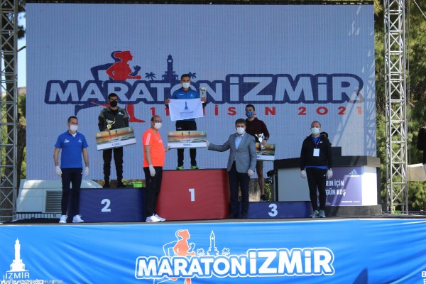 42 kilometre erkekler birincisi Getachew’e ödülünü Türkiye Atletizm Federasyonu Başkan Vekili Ali Aksu, kadınlar birincisi Kenyalı Betelhem Moges’e ise ödülünü İzmir Büyükşehir Belediyesi Başkan Vekili Mustafa Özuslu takdim etti.