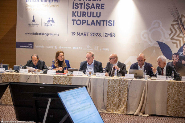 “Yeniliğe Davet” başlığıyla yapılan ve geleceği inşa etmeye çağıran İkinci Yüzyılın İktisat Kongresi beşinci gününde. Üçüncü ve son kez toplanan Yüksek İstişare Kurulu, 21 Mart’ta tüm Türkiye ve dünyaya duyurulacak sonuç bildirgesinin giriş metnini ve paydaş gruplarından gelen değişiklik önerilerini değerlendirdi. Toplantı sırasında basın açıklaması yapan İzmir Büyükşehir Belediye Başkanı Tunç Soyer, “Paydaş ve uzmanlarımızın yaptığı çalışmalar tamamlandı. O tamamlanan çalışmalar ışığında Yüksek İstişare Kurulumuz son revizyonları, rötuşları yapmak üzere bir araya geldi. Kurulumuz, bütüncül bir perspektif ortaya koymaya gayret ediyor. Gözden kaçan, eksik kalan hususlar varsa onları tamamlamaya gayret ediyor. Çiftçi, işçi ve sanayici-tüccar-esnafların aldığı ilke ve kararların önünde, bu alınan kararların çerçevesini ortaya koyan giriş bölümü yer alacak. Şu anda burada onun son hâli için çalışılıyor. Yarın da varsa çiftçilerin, işçilerin, sanayici-tüccar-esnafların aralarında uzlaşamadıkları hususlar üzerine çalışılacak. 21 Mart’ta ise son hâline gelen metinleri, tüm delegelerin hazır bulunacağı bir ortamda oylarına sunacağız. Oylamayla da son neticeyi almış olacağız” dedi.