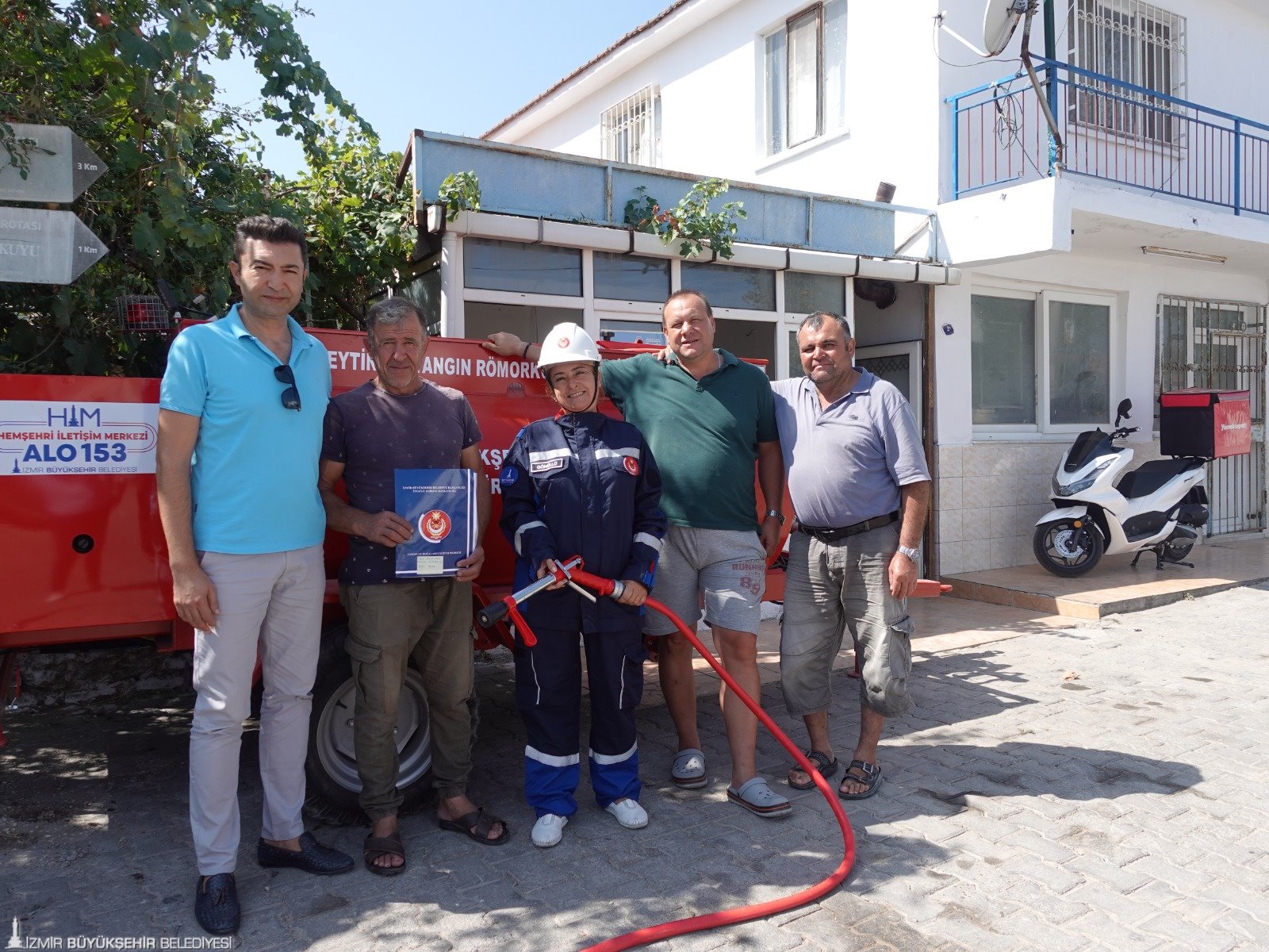 İzmir Büyükşehir Belediyesi’nin orman köylerine dağıttığı 2,5 ton su kapasiteli tanker sayısı, 40 tankerlik son parti ile toplamda 440’a ulaştı. Urla’da orman yangını riski içeren 13 köy de su tankerine kavuştu. Teslimat sonrası Urla ve Çeşme’deki muhtarları ziyaret eden İzmir Büyükşehir Belediyesi Yarımada Şube Müdürü Çağlayan Karaca,”Yaz boyuncu Yarımada’da büyük yangınlarla mücadele edildi. Muhtarlarımız her zaman ilk koşanlardan oldu. Bu müdahaleler sayesinde birçok yangın da en başında söndürüldü” diye konuştu. Tankerlerin yanı sıra yangın korunma elbisesi, eldiven, baret ve iş gözlükleri de verilen muhtarların kullanım öncesinde İzmir İtfaiyesi’nden yangın eğitimi alarak sertifika sahibi olduklarını da hatırlatan Karaca, teorik eğitim sonrasında tanker kullanımı için pratik eğitim alan muhtarların yangına karşı mücadeleye hazır olduklarını belirtti.