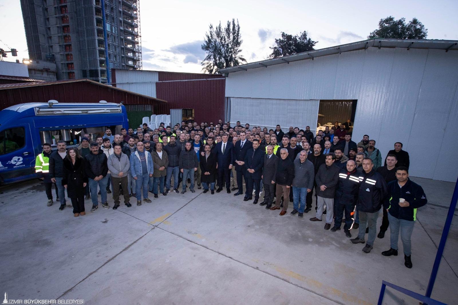 İzmir Büyükşehir Belediye Başkanı Dr. Cemil Tugay, yeni haftanın ilk mesaisine Yapı İşleri Dairesi Başkanlığı’ndaki çalışma arkadaşlarıyla başladı. Yapı İşleri Dairesi’nin Turan’daki şantiyesinde personelle yeni yıl kahvaltısında bir araya gelen Başkan Dr. Cemil Tugay’a İzmir Büyükşehir Belediyesi Genel Sekreter Yardımcısı Çağatay Güç, Yapı İşleri Dairesi Başkanı Onur Açık eşlik etti. Başkan Tugay, şantiyedeki personelin yeni yılını kutlayarak sohbet etti.