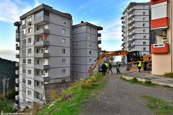 Çalışmaları bölgede takip eden İzmir Büyükşehir Belediyesi Fen İşleri Dairesi Başkanı Özgür Ozan Yılmaz, sürdürülen işlemler hakkında bilgi verdi. Yılmaz, “Dün akşamdan beri binaların boşaltılmasına ilişkin emniyet tedbirleri alındı. İlk etapta binalarda şu an yapısal bir problem görülmüyor. Kaymadan dolayı bir çatlak, hasar yok. Ama kaymanın devam etmesi halinde binalarda da tehlike olabilir düşüncesiyle çöken istinat duvarının olduğu bölgede ‘shutgrid’ dediğimiz püskürtme beton çalışması başlattık. Bu geçici olarak zemindeki akmanın önlenmesi için yapıldı. Toprakla havanın temasını kesip bir emniyet tedbiri alıyoruz. Burasıyla ilgili belediyemiz proje hazırlayacak ve sonrasında gerekli çalışmalar yapılacak. Narkent Sitesi güvenli hale getirilecek” dedi.