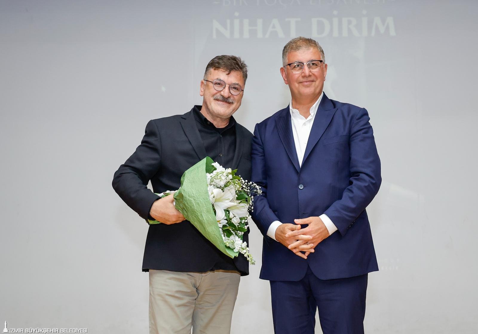 İzmir Büyükşehir Belediye Başkanı Dr. Cemil Tugay, “Bir Foça Efsanesi: Nihat Dirim” adlı belgeselin gösterimine katıldı. Foça Reha Midilli Kültür Merkezi’ndeki buluşmada Başkan Dr. Cemil Tugay’ın eşi Öznur Tugay, Foça Belediye Başkanı Saniye Bora Fıçı, Dirim ailesinin üyeleri, Cumhuriyet Halk Partisi’nin (CHP) örgüt mensupları, belediye meclis üyeleri, muhtarlar ve vatandaşlar yer aldı. Foça’da 1989-1999 yılları arasında görev yapan ve “Efsane Başkan” olarak anılan merhum Nihat Dirim’in hayatından kesitlerin yer aldığı belgeselin gösteriminin sonunda Başkan Tugay, yönetmen Hakan Barçın’a çiçek takdim etti.
