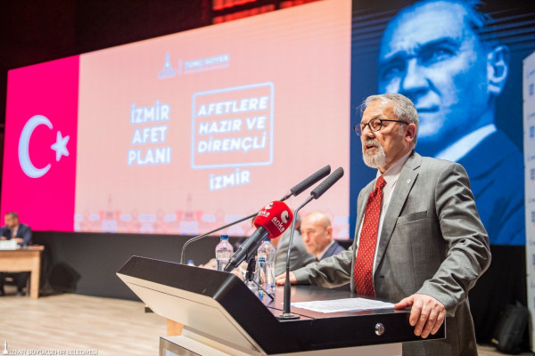 İzmir Büyükşehir Belediye Başkanı Tunç Soyer’in öncülüğünde düzenlenen “İzmir Afet Planı-Deprem Hazırlık ve Dirençlilik Çalışmaları” bilgilendirme toplantısında konuşan Jeolog Prof. Dr. Naci Görür, Türkiye’nin Depremselliği ve Deprem Risk Yönetimi üzerine değerlendirmede bulundu.