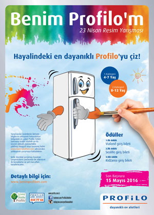 Profilo Dayanıklı Ev Aletleri, 23 Nisan Ulusal Egemenlik ve Çocuk Bayramı’nın kahramanları çocuklar için bir resim yarışması düzenliyor. ‘Benim Profilo’m’ adlı resim yarışmasında, çocukların hayal güçlerini kullanarak, onların kahramanı olan Profilo Dayanıklı Ev Aleti’ni çizmeleri isteniyor.