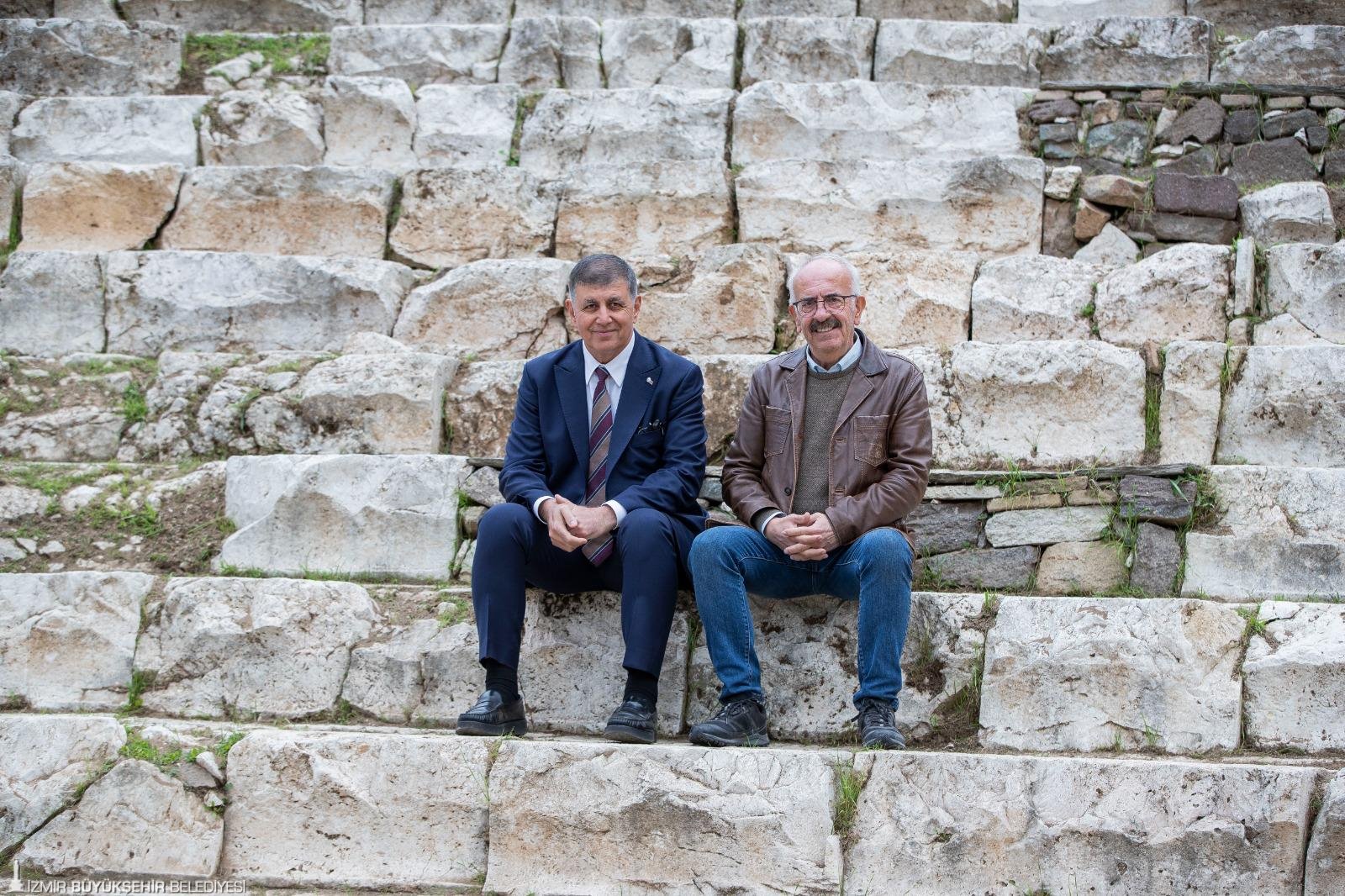 20 bin kişilik kapasitesiyle Efes Antik Tiyatrosu büyüklüğündeki Antik Smyrna Tiyatrosu ile Smyrna Agorası’ndaki Roma dönemi hamamının gymnasium bölümünü gün yüzüne çıkarmak için yoğun bir çaba sarf eden Prof. Dr. Akın Ersoy’un başkanlığındaki ekibi ziyaret eden İzmir Büyükşehir Belediye Başkanı Dr. Cemil Tugay, çalışmalar hakkında bilgi aldı. Başkan Tugay’a İzmir Büyükşehir Belediyesi Genel Sekreter Yardımcıları Prof. Dr. Pınar Okyay ve Dr. Hakan Uzun, İzmir Büyükşehir Belediyesi Kent Tarihi, Tanıtım ve Turizm Dairesi Başkanı Hasibe Velibeyoğlu ile bürokratlar eşlik etti. Prof. Dr. Akın Ersoy, bölgede yaptıkları kazı çalışmaları hakkında Başkan Tugay’a bilgi vererek burada düzenlenecek etkinliklerin alana ilgiyi artıracağını söyledi. İzmir Büyükşehir Belediyesi Kent Tarihi, Tanıtım ve Turizm Dairesi Başkanı Hasibe Velibeyoğlu ve İzmir Büyükşehir Belediyesi Kent Tarihi, Tanıtım ve Turizm Dairesi Başkanlığı Tarihsel Çevre ve Kültür Varlıkları Şube Müdürü Hilmi Gökhan Kutlu alanın planlarını anlattı.