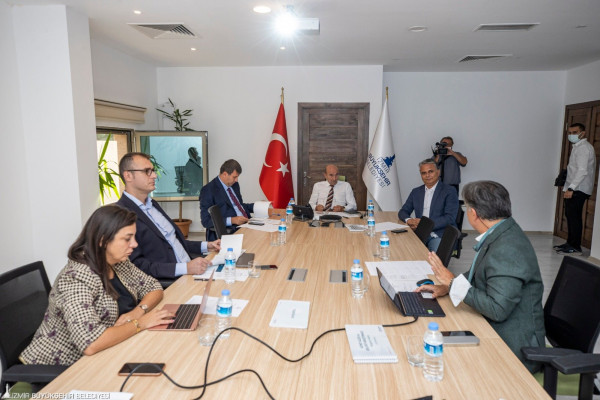 Kültürpark’taki İzmir Sanat Çalışma Ofisi’nde düzenlenen toplantıya SODEMSEN Yönetim Kurulu Üyeleri İZFAŞ Genel Müdürü Canan Karaosmanoğlu Alıcı, Karşıyaka Belediye Başkanı Cemil Tugay, Kadıköy Belediye Başkanı Şerdil Dara Odabaşı, Muratpaşa Belediye Başkanı Ümit Uysal, Ardahan Belediye Başkanı Faruk Demir katıldı. İzmir Büyükşehir Belediyesi Başkan Vekili Mustafa Özuslu ve İzmir Büyükşehir Belediye Başkan Danışmanı Onur Eryüce’nin de yer aldığı toplantıda gündemdeki maddeler masaya yatırıldı. Belediye başkanları birlikte yapılacak çalışmalar üzerinden değerlendirmeler yaptı.