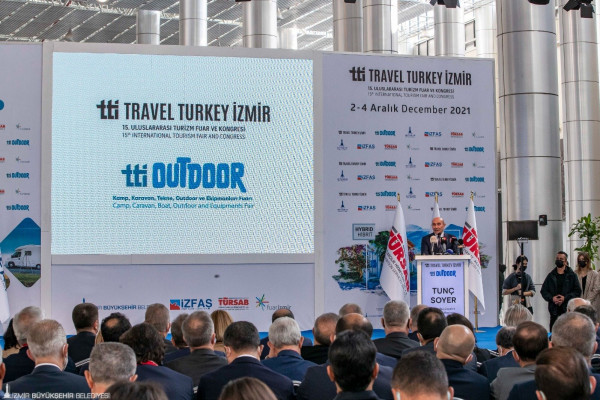 İzmir Büyükşehir Belediyesi ev sahipliğinde düzenlenen 15’inci Travel Turkey İzmir-Uluslararası Turizm Fuar ve Kongresi, Fuar İzmir’de açıldı. Kültür ve Turizm Bakanlığı ile Ticaret Bakanlığı himayesinde, İzmir Ticaret Odası, TÜRSAB, TÜROFED, İzmir Vakfı desteği ile İZFAŞ ve TÜRSAB Fuarcılık tarafından organize edilen fuar bu yıl bünyesine TTI Outdoor – Kamp, Karavan, Outdoor ve Ekipmanları Fuarı’nı da ekledi. Fuar, Türkiye’nin ve dünyanın önde gelen turizm paydaşlarını İzmir’de buluşturdu. 2 – 4 Aralık 2021 tarihleri arasında 22 il ve 5 ülkeden 500 katılımcıyı 58 ülkeden gelen ziyaretçilerle bir araya getirecek fuarda dünya turizm trendleri ve Türkiye’nin tarihi ve kültürel değerleri tanıtılacak.