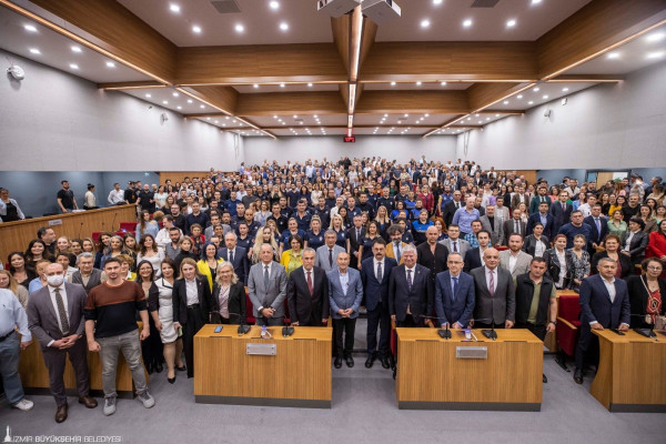 İzmir Büyükşehir Belediye Başkanı Tunç Soyer, Ramazan Bayramı öncesi Meclis toplantı salonunda personelle buluştu. Başkan Tunç Soyer, İzmir Büyükşehir Belediye Başkan Vekili Mustafa Özuslu, İzmir Büyükşehir Belediyesi Genel Sekreteri Barış Karcı ile bürokratlar ve çalışanların katıldığı törende personelin bayramını kutladı.