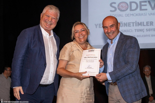 İzmir Büyükşehir Belediye Başkanı Tunç Soyer, Sosyal Demokrasi Vakfı’nın (SODEV) İzmir Sanat’ta düzenlediği Yerel Yönetimler Okulu Eğitim Programı’na katıldı. Kapanış konuşmasını yapan Başkan Tunç Soyer, 2019 yılında göreve geldiğinden bu yana yaptığı çalışmaları ve hedeflerini anlattı. Başkan Soyer’in konuşmasını, geçmiş yıllarda devlet bakanlığı, dışişleri bakanlığı, başbakan yardımcılığı ve Ankara Büyükşehir Belediye Başkanlığı görevlerini yürütmüş, eski Sosyal Demokrat Halk Partisi Genel Başkanı Murat Karayalçın, CHP 26. Dönem Milletvekili Zeynep Altıok, Sabancı Üniversitesi Öğretim Üyesi Emeritus Prof. Dr. Korel Göymen, akademisyenler, bürokratlar ve vatandaşlar da takip etti. Program sonunda eğitime katılanlara sertifika takdim edildi.