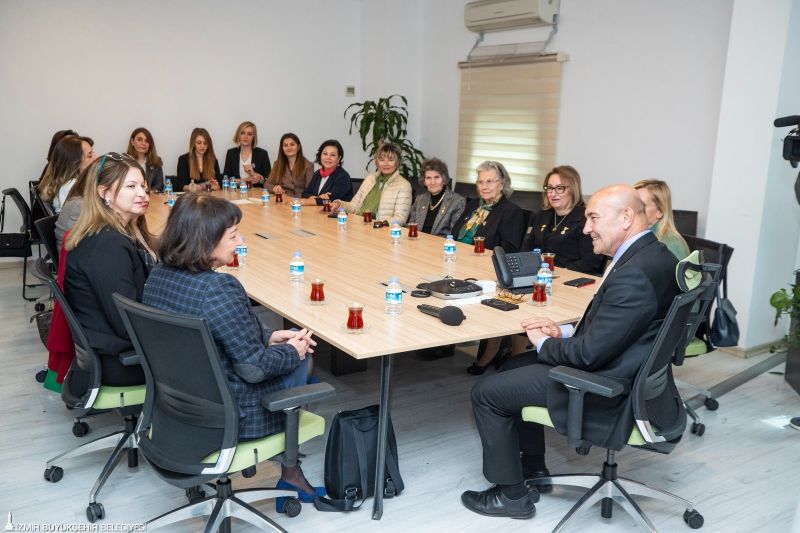 İzmir Büyükşehir Belediye Başkanı Tunç Soyer, Türk Üniversiteli Kadınlar Derneği, Ege İş Kadınları Derneği ve İzmir İş Kadınları Derneği’ni ağırladı. Kadın gücünün önemine vurgu yapan Başkan Tunç Soyer, “Sizlerin iş birliği ile ortaya çıkacak sinerjiyi büyütebilirsek o zaman Türkiye’de çocuklarımız, torunlarımız için umut verecek bir şey başlatmış olabiliriz. Bu İzmir’e yakışır. Asıl büyük heyecanım orada. O yüzden sizi bırakmayacağım diyorum” dedi.