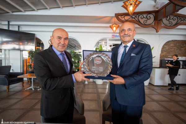 İzmir Büyükşehir Belediye Başkanı Tunç Soyer, kentte bulunan sivil toplum kuruluşu ve hemşehri derneklerinin desteğini ifade etmek için davet ettiği buluşmaya katıldı. Karşıyaka Denizpark Kafe’deki buluşmada Başkan Tunç Soyer’e sivil toplum kuruluşlarına yaptığı destekler için teşekkür plaketi verildi. Konyalılar Dernekleri Birliği Federasyon Başkanı Mehmet Aydoğan da Başkan Tunç Soyer’in yerel seçimlerde yeniden aday gösterilmesini istediklerini belirterek, “Çok renk, çok nefes dediniz. İnsanları memleketi veya partisinden dolayı ayırmadınız. Bütün Anadolu insanlarını kucakladınız. Elinizden geldiği kadar herkese destek oldunuz. Cumhuriyet tarihinin en büyük yatırımlarını yaptınız. Buca ve Narlıdere Metrosu, Çiğli Tramvayı… Altyapı ile ilgili ciddi yatırımlar yapıldı. Olağanüstü hizmetleri olan belediye başkanımıza teşekkür plaketi vermek istiyorum. İnşallah yeniden aday olacaksınız. Gönlümüz öyle istiyor” dedi.