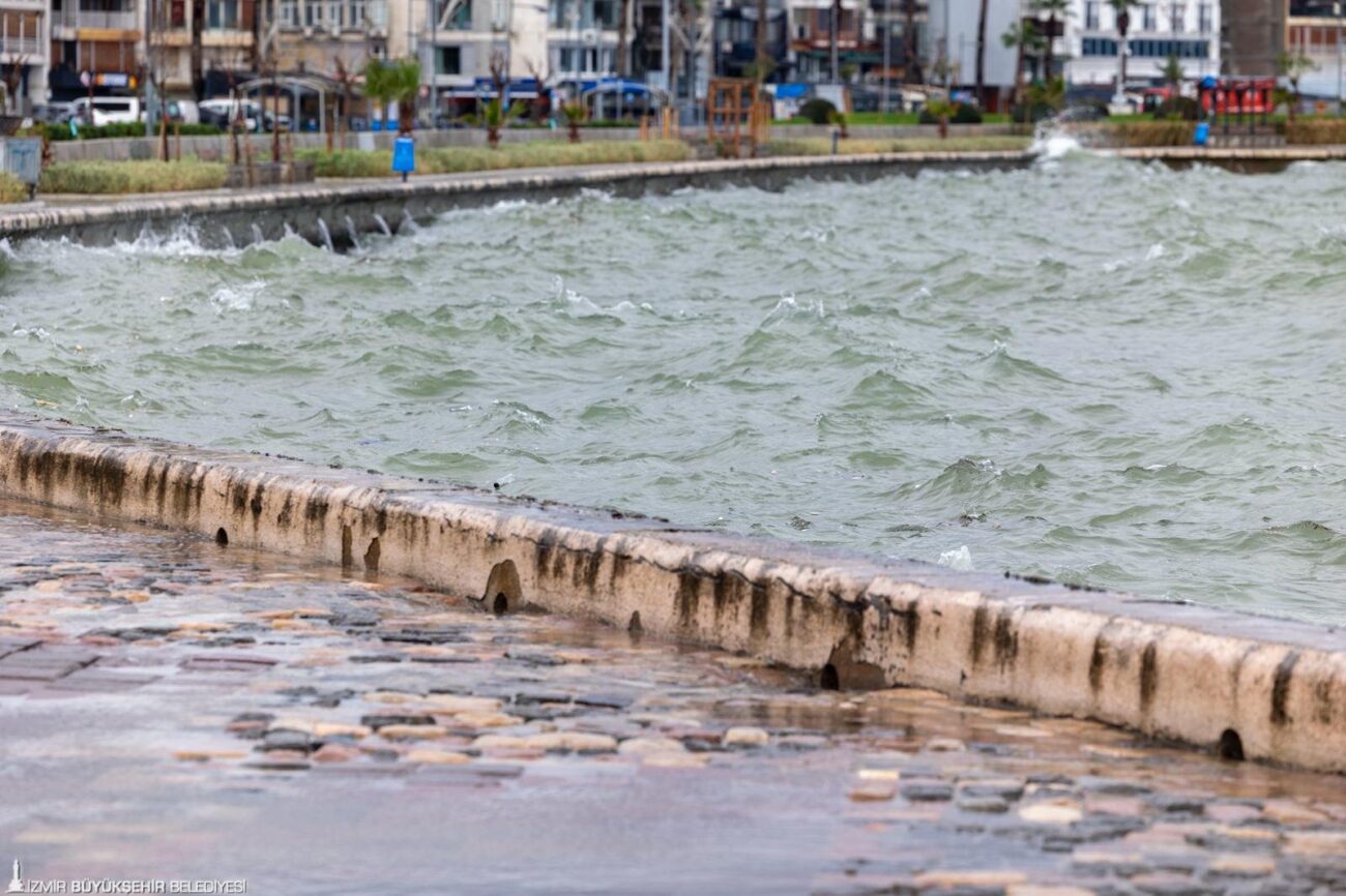 Ege’yi etkisi altına alan düşük basınç sistemi İzmir’de deniz seviyesini 85 santimetreye kadar yükseltti. 17 Şubat’ta 991 milibara kadar gerileyen atmosfer basıncı, güneyli rüzgâr ve yağışla birleşince kıyı hattında kısa süreli taşmalar yaşandı. İZDENİZ Yönetim Kurulu Başkanı Dr. Işıkhan Güler, “Deniz seviyesi altyapı kotlarının üzerine çıktığında suyun mazgallardan geri basması fiziki bir zorunluluktur. Bu altyapı yetersizliği değil, hidrolik dengenin doğal sonucudur” dedi.