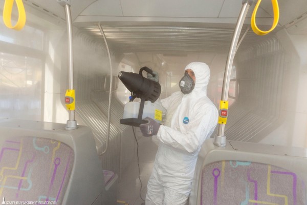 ESHOT ve İZULAŞ otobüsleri, hem seferlerden sonra hem de gün sonunda garajlarda, insan ve çevre sağlığına zararı bulunmayan su bazlı temizlik ürünleri ile virüslerden ve bakterilerden arındırılıyor. Metro vagonları Fahrettin Altay İstasyonu’nda; Karşıyaka Tramvay araçları Alaybey Durağı’nda ve Konak Tramvay araçları da Halkapınar Durağı’nda, her seferden sonra ve gün sonunda en ince ayrıntısına kadar dezenfekte ediliyor. İZDENİZ’de de yolcu gemileri, araba vapurları ve iskeleler, gün içinde sürekli temizleniyor. Gün sonunda da tüm gemiler ve iskeleler, gece vardiyasında görev yapan temizlik personeli tarafından dezenfekte edilip ertesi güne hazırlanıyor. TCDD-Büyükşehir ortaklığıyla işletilen İZBAN tren setleri ile istasyonlar, her gün rutin detaylı temizliğin yanı sıra düzenli olarak dezenfekte ediliyor. Teması azaltmak için tren seti kapıları otomatik açılıyor.