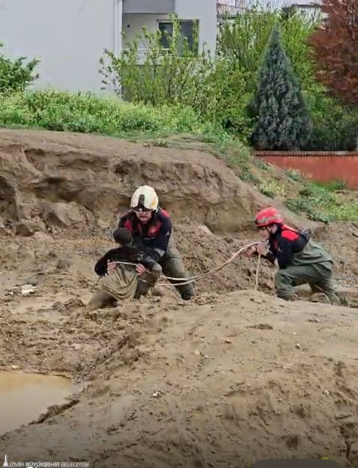 İzmir’in Torbalı ilçesinde dün etkili olan sağanak yağış sonrası balçığa dönen arazide oyun oynayan iki çocuk çamura saplanarak mahsur kaldı. İhbar üzerine olay yerine gelen itfaiye ekipleri, zorlu zeminde yürüttükleri dikkatli çalışma sonucu çocukları kurtararak sağlık ekiplerine teslim etti; çocukların durumunun iyi olduğu öğrenildi.
